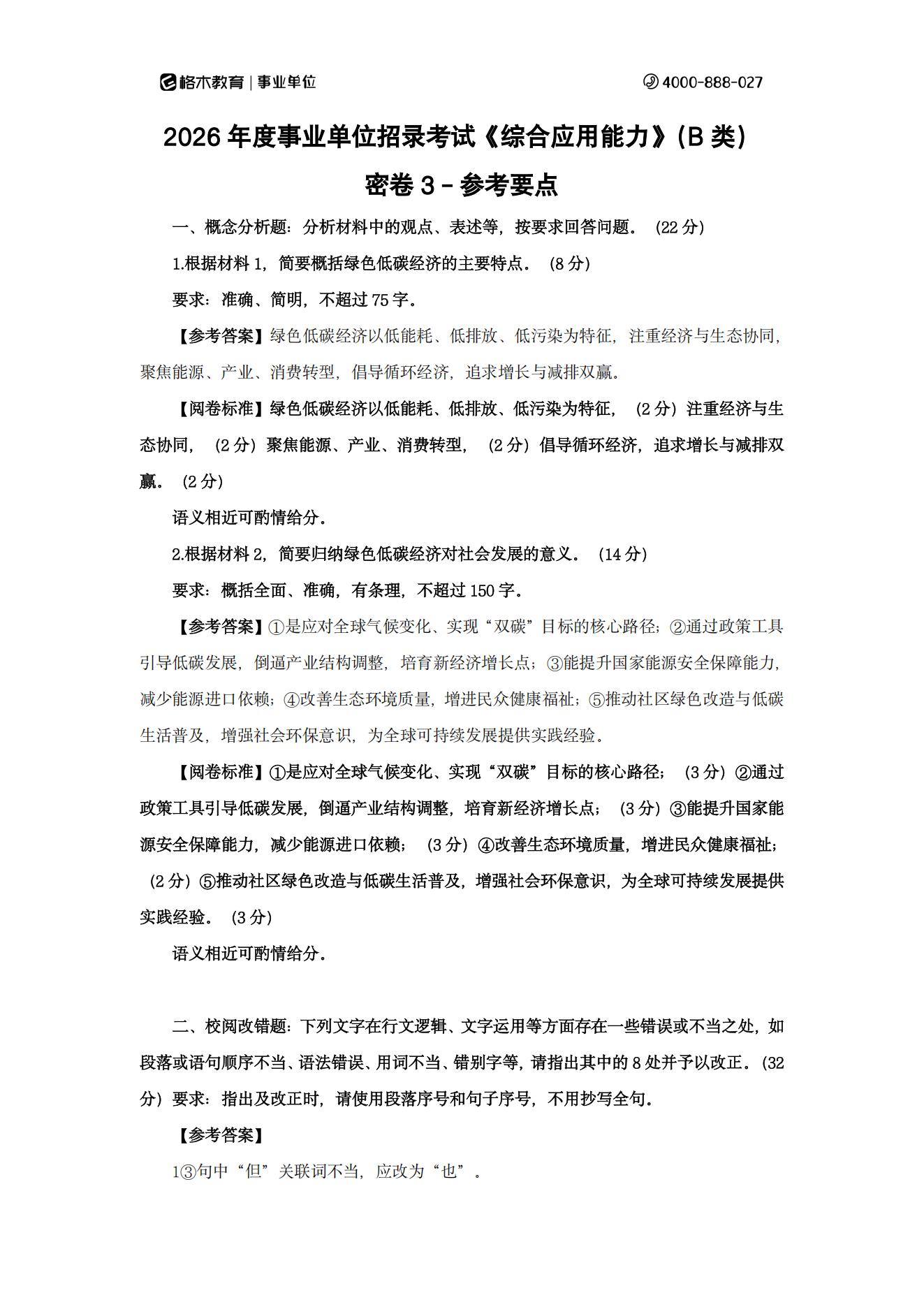 2026湖北事业单位综合B密卷3解析
