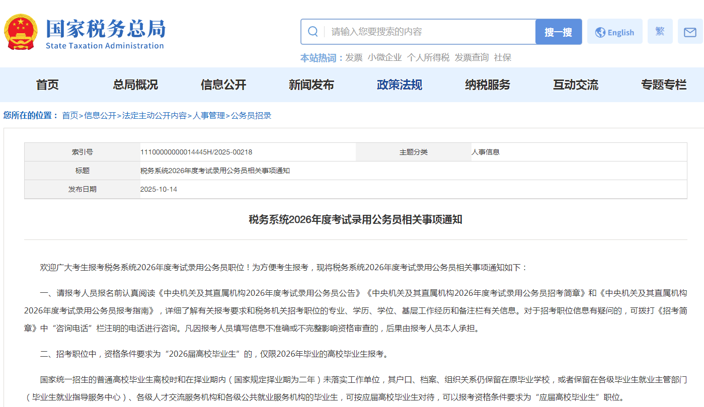 欢迎广大考生报考税务系统2026年度考试录用公务员职位!为方便考生报考,现将税务系统2026年度考试录用公务员相关事项通知如下: