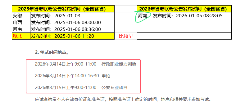 今年河南省考打响2026多省公务员联考第一炮,全省招录公务员10429人,1月6日至12日报名,3月14、15日进行笔试。湖北省考往年都参加多省公务员联考,一般1月上旬发布公告。湖北省考公告逼近,大家提前做好准备!