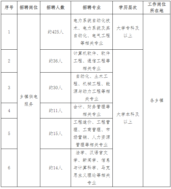 6.同等条件下,退役军人优先录用;对报考供电服务公司的毕业生,同等条件下,县域属地农村生源优先;条件优秀或愿意赴艰苦边远地区、欠发达地区工作的,年龄可适当放宽。