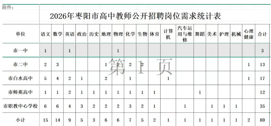 2026年枣阳市高中教师招聘计划80个,拟采用笔试+面试的方式公开招聘,相关公告拟于近期在枣阳人事考试网发布。